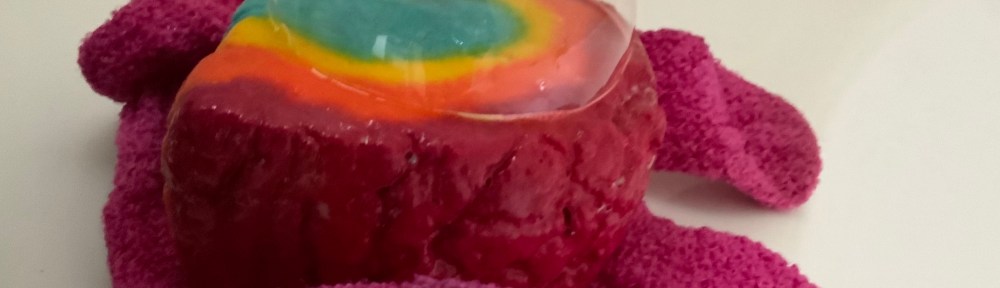 It is brightly coloured, just like the rainbow. Who’d have thought? The smell is very zesty- lemon fresh. I love how when you run it under the water it will make your hands turn blue, yellow, orange or red. There are a lot of bubbles from this one.